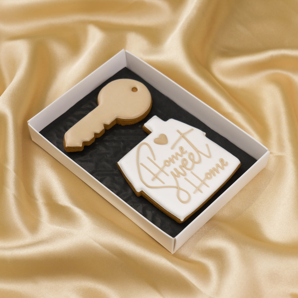 Looking for the perfect house-warming gift for a friend or loved one? Our new home iced biscuit gift box is the perfect surprise for that new home owner. This set includes a hand iced "Home Sweet Home" biscuit message finished off with a key iced biscuit which couldn't be more fitting.